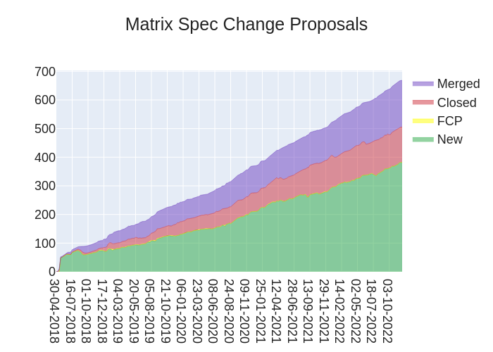 Here's your weekly spec update! The heart of Matrix is the specification - and this is modified by Matrix Spec Change (MSC) proposals. Learn more about how the process works at https://spec.matrix.org/proposals