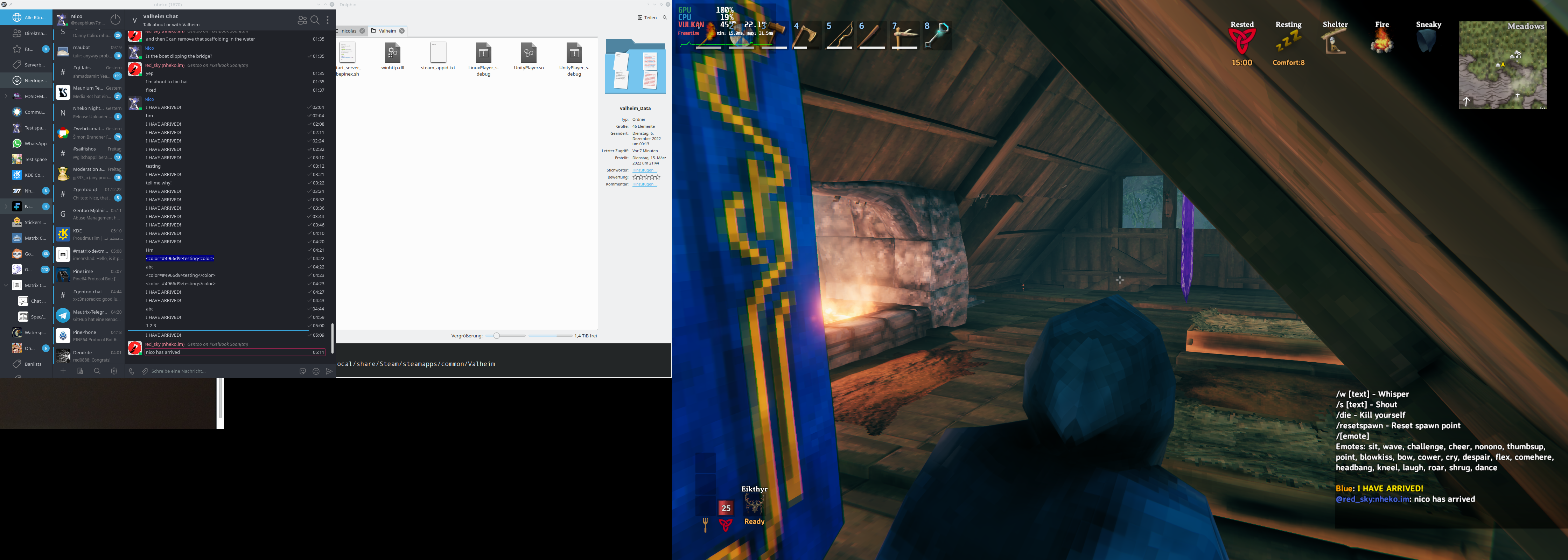 So... some people are distracting me by asking me to play Valheim all the time since Mistlands was in public beta (it is released now). To make that easier to synchronize, especially if not everyone can be online all the time, I wrote a small bridge: https://nheko.im/nheko-reborn/valheimmatrix