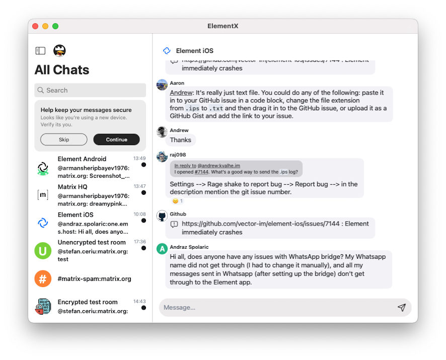 Work on Element X is making great progress, weโre even looking at how to improve the iPad and desktop view for users on larger screens.